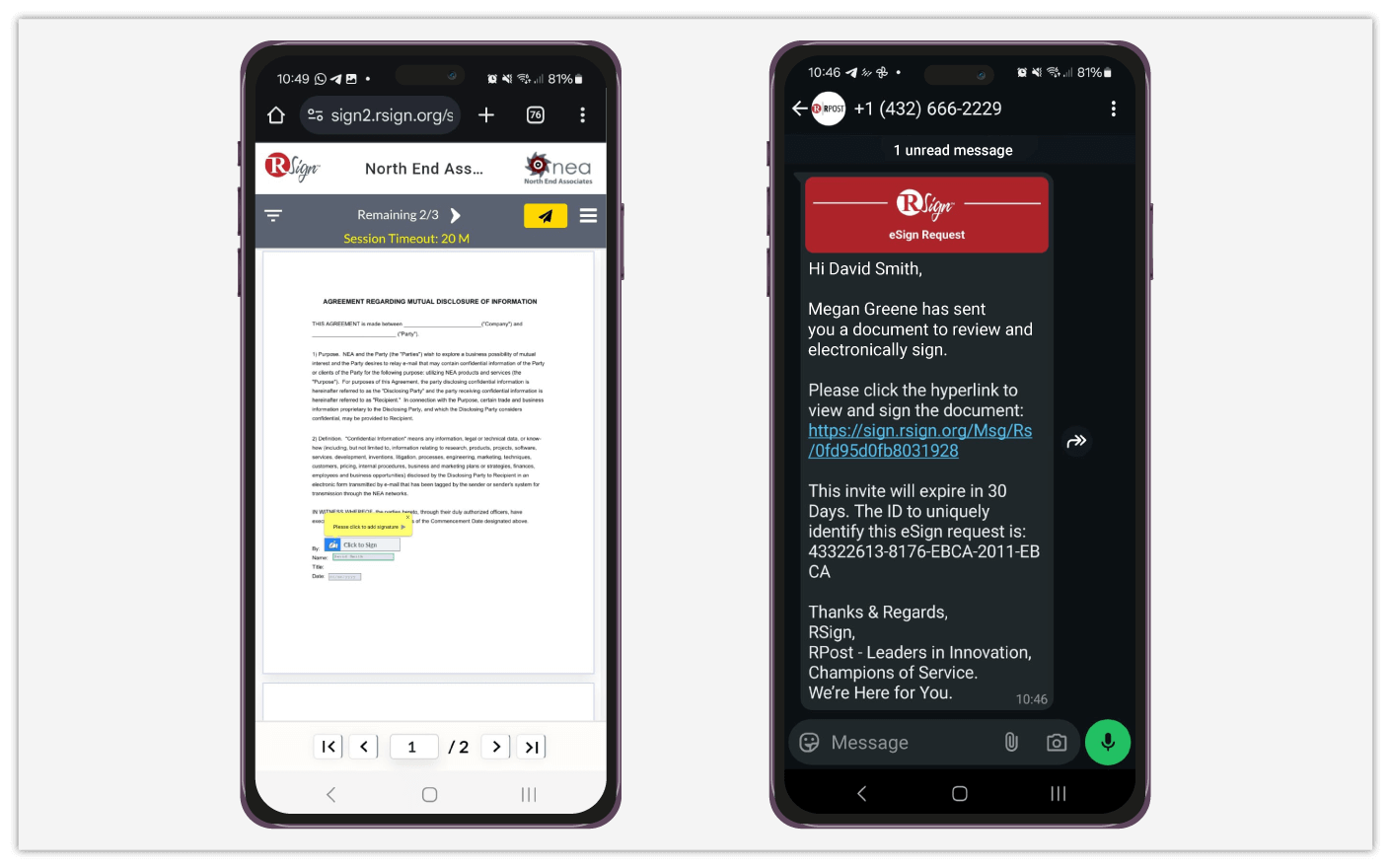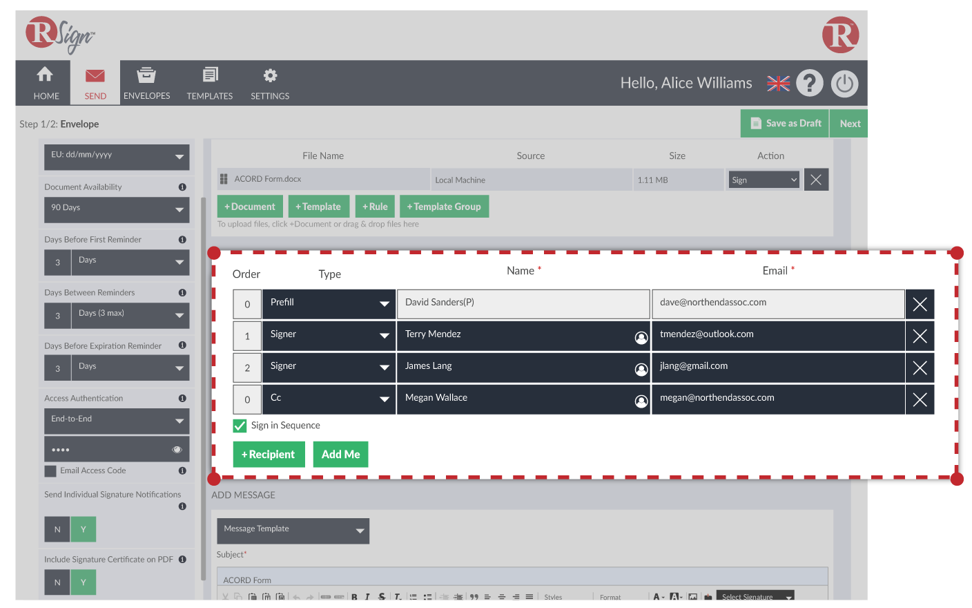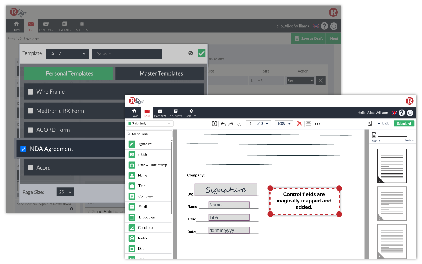 RSign streamlines high-stakes M&A due diligence, from first-touch NDAs and disclosure schedules to consents, reps & warranties, and close packets. Move faster using RSign’s Bulk Send with templates to easily send documents to buyers, sellers, auditors, and advisors for signature, routing multi-party agreements sequentially or in parallel, depending on deal urgency. Secure transactions with encryption and 2FA authentication, track progress in real time, and capture key audit trail information in RSign’s Signature Certificate, providing the traceability required for compliance and post-deal audits.